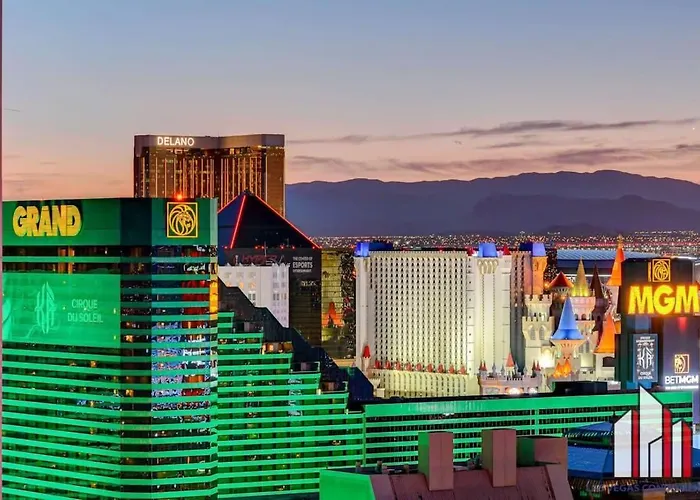 De 3-slaapkamer Signature 2Br3Ba F1 View Balcony Ste 28-814 And 16 Las Vegas villa heeft een zwembad voor de ontspanning van de gasten en ligt op 20 minuten wandelafstand van het Park MGM Las Vegas.